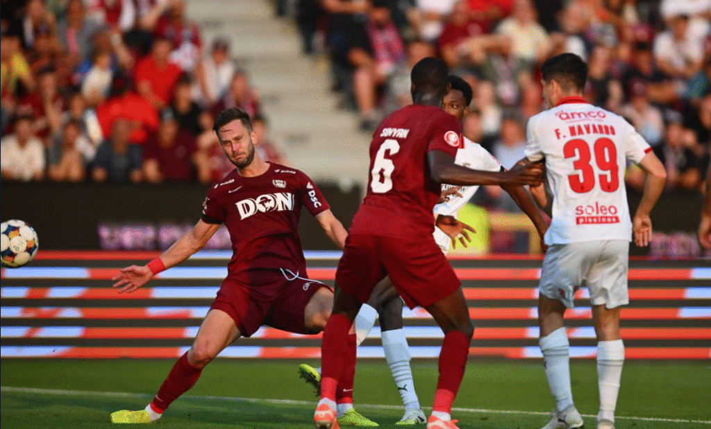 CFR Cluj a pierdut partida cu Braga disputată joi seara în Gruia, în primul meci al dublei manșe din turul trei preliminar din Europa League. Feroviarii nu au făcut deloc o partidă rea, ținând cont de valoarea adversarilor, care au deschis scorul în minutul 17, la prima ocazie de gol a lor. Sinyan a restabilit meritat egalitatea în minutul 29, însă lusitanii au lovit din nou în startul reprizei secunde. CFR poate invoca neacordarea unei lovituri de la 11 metri în minutul 70, însă până la final vișinii s-au lovit de apărarea extrem de precisă a oaspeților, care și-au securizat cu succes victoria.