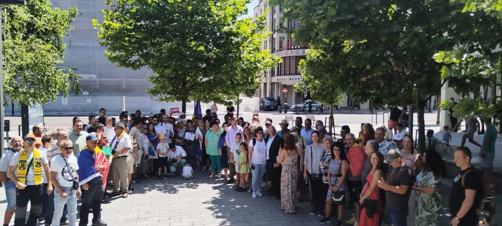 Numeroși membri și simpatizanți ai Alianței pentru Unirea Românilor au ieșit, duminică, în stradă, în fața Prefecturii Cluj, pentru a protesta împotriva „austerității”.
