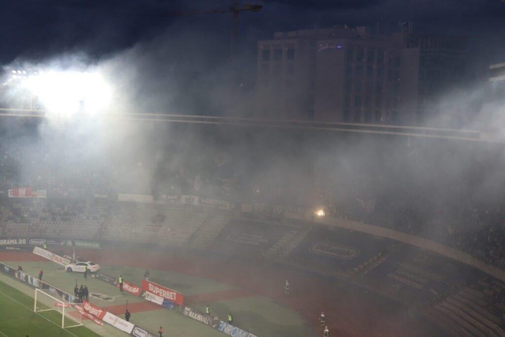 În contextul confruntării dintre cele două echipă, miile de suporteri din Galeria Șepcilor Roșii au creat în stilul specific o atmosferă electrizantă cu o coregrafie de excepție, cu cântece și scandări. Un moment cu totul excepțional a fost creat când suporterii au cântat celebrul imn al galeriei „Primul pas spre stadion”, galeria declanșând un adevărat spectacol cu torțe și lumini.