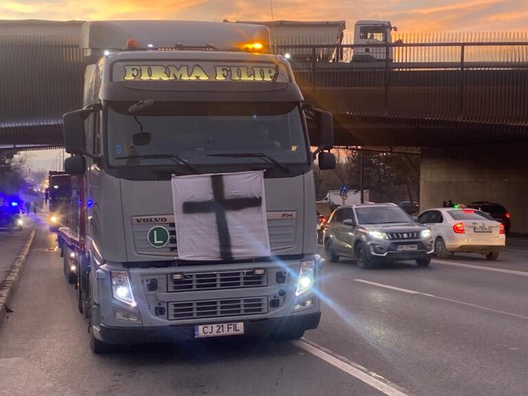 Firmele de transport din județul Cluj au continuat joi protestul pe DN 1 E...