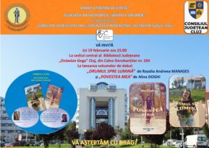 Cele două scriitoare în devenire, eleve ale Liceului Teoretic „Dumitru Tăuțan” din Florești, de la Așezământul pentru copii „Sfântul Onufrie” de pe lângă Mănăstirea din Tăuți, Rozalia Andreea Manases și Alina Doghi își lansează, oficial, primele lor cărți, joi 19 februarie ora 15.00, la sediul Bibliotecii Județene „Octavian Goga” Cluj, din Calea Dorobanților, nr 104. Evenimentul este organizat de Asociația Filantropică „Sfântul Onufrie”, în parteneriat cu Consiliul Județean Cluj și cu Biblioteca Județeană „Octavian Goga” din Cluj-Napoca. Ziarul Făclia de Cluj a scris, în paginile sale, la sfârșitul anului trecut despre acest deosebit demers și va fi prezent, prin redactorii săi, la dubla lansare de carte. Totodată, copiii de la Așezământ vor avea din luna martie propria lor revistă, „Stropi de lumină”, scriitorul Ioan Ciorca, fiind coordonatorul redacției.